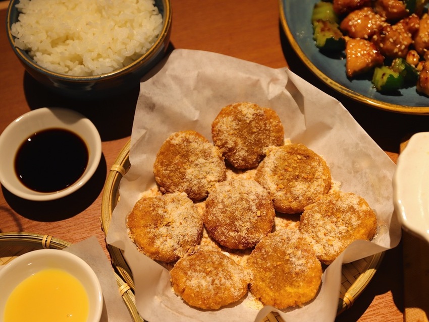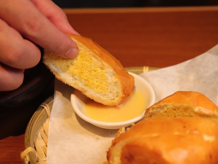 熱炸上桌,外皮香酥,裡面濕潤軟口,搭配香甜煉乳 也很好吃!