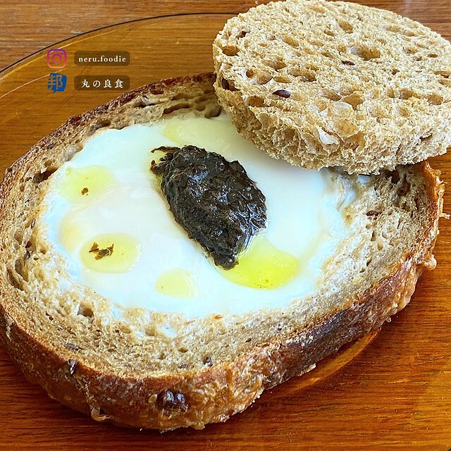 而紮實帶有嚼勁的黑麥麵包躺上兩顆半熟蛋點綴一點松露醬也是蠻不錯的!