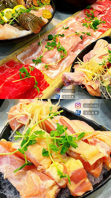 套餐中有肥牛五花.澳板腱牛.雪花牛.翼板牛.梅花豬.肥豬五花.松阪豬.雪花羊小羔羊嫩肩.櫻桃鴨.霜降.雞.咕咕雞腿等肉品選四種