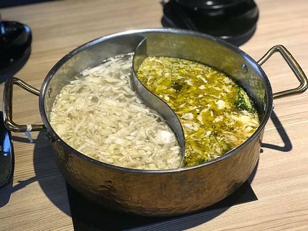我選擇鴛鴦鍋左邊是原味酸菜白肉鍋
