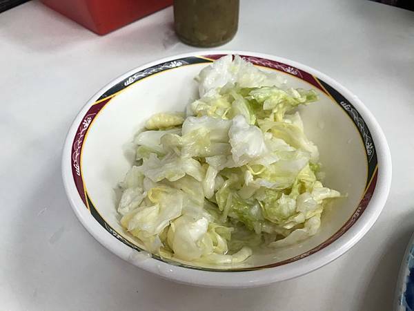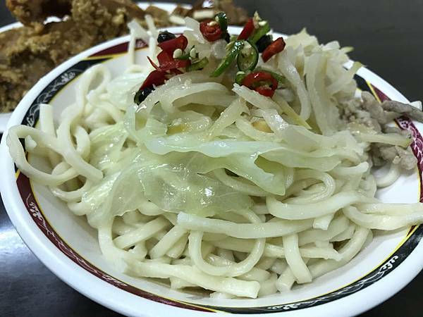 乾麵上頭還有加上榨菜跟燙高麗菜