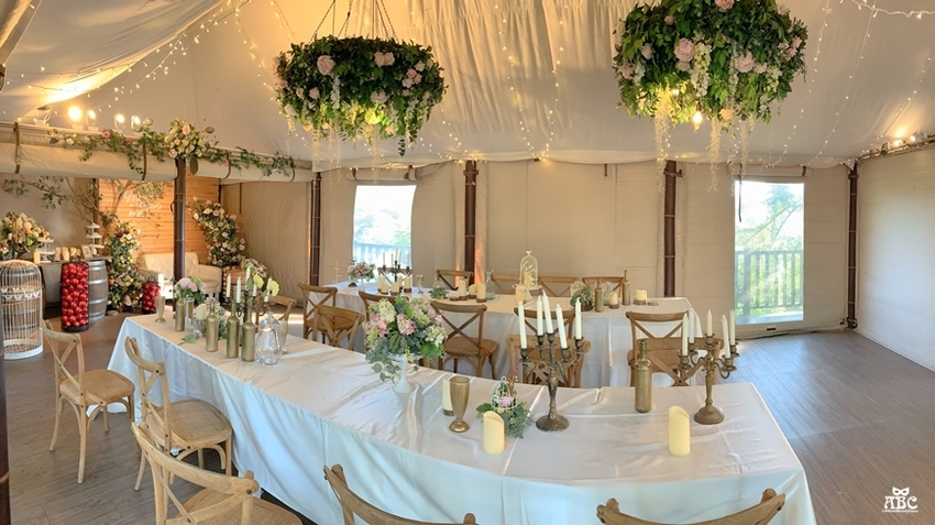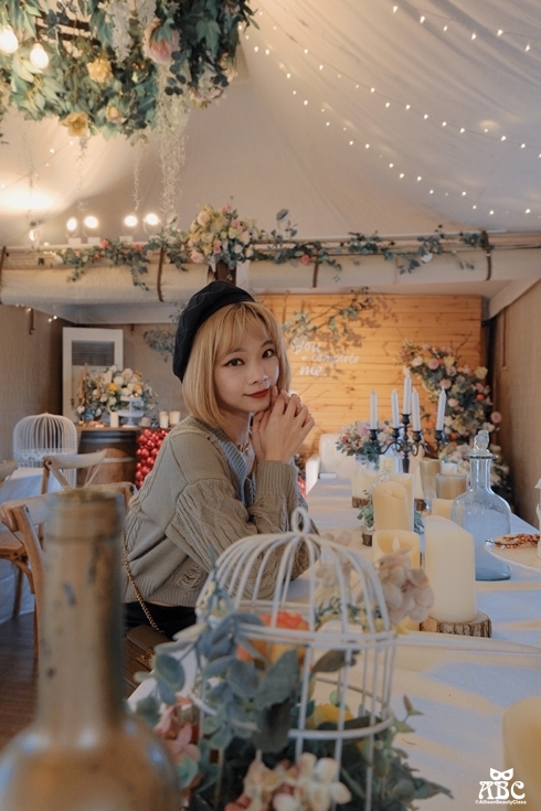 小步舞曲很像一個迷你的戶外婚禮場景,白幕頂棚、白色桌布、木質桌椅、大量的花束裝飾,點綴著溫馨浪漫的燈光,完全符合女孩夢想中的聚餐場地啊!這邊的長桌很適合家族旅遊來拍照,空間夠大架腳架也方便!