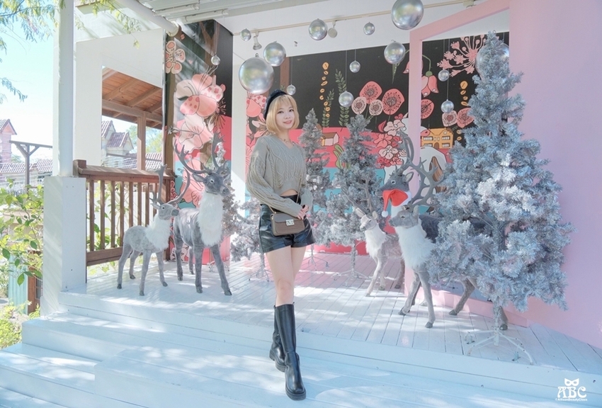可愛馴鹿跟聖誕樹打造的雪白舞台,敞開的粉色門框彷彿是進入另一個聖誕國度的開端,充滿奇幻巧思。