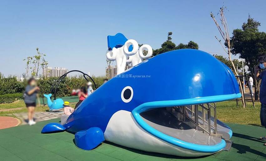 ☞頂魚寮公園。鯨魚溜滑梯、海洋3D地景彩繪、台中親子免費景點,海線彩繪親子公園