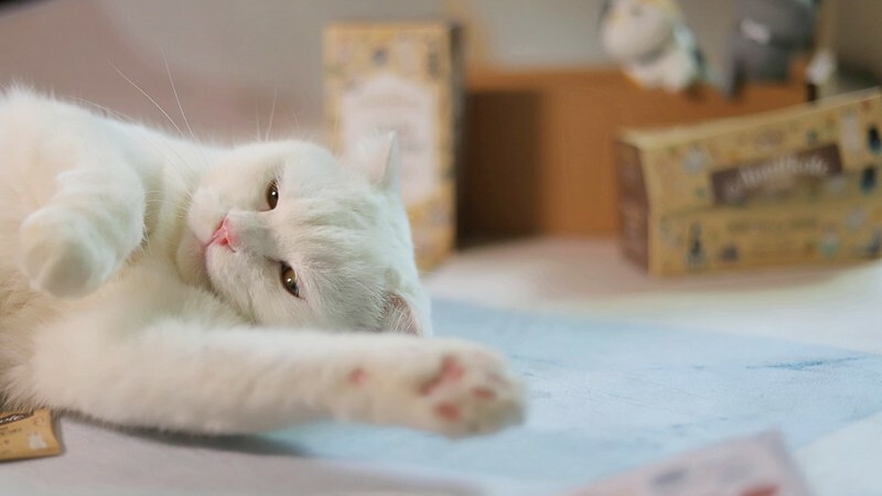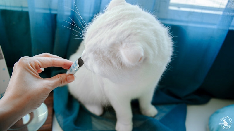 打開盒蓋後就會發現小包裝,聞起來…好像蠻好吃的!既然是貓要吃的,讓貓白白先聞再吃最準!