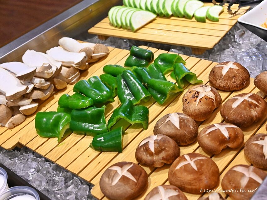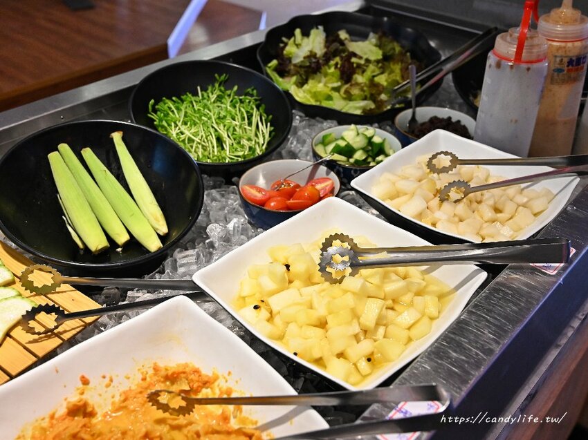 自助吧區提供了手作小菜、沙拉、醬料,還有香菇、青椒、玉米筍、杏鮑菇、絲瓜等蔬菜類,不管是煮火鍋或是燒烤都行