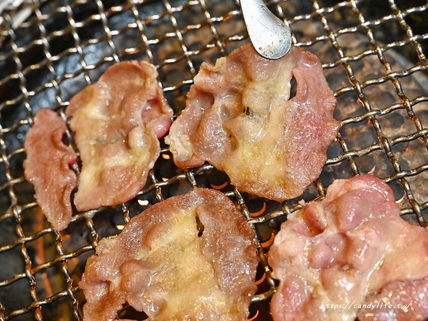 香香燒肉工坊的牛舌是切成薄片狀,下去燒烤至7、8分熟,吃起來帶點微脆口感,佐上些許鹽蔥享用,層次更豐富