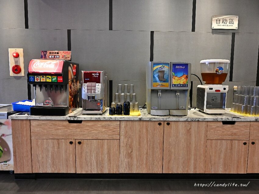 另一區是飲料、咖啡、汽水及冰淇淋可以自行取用
