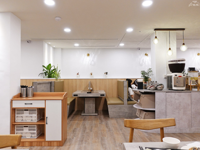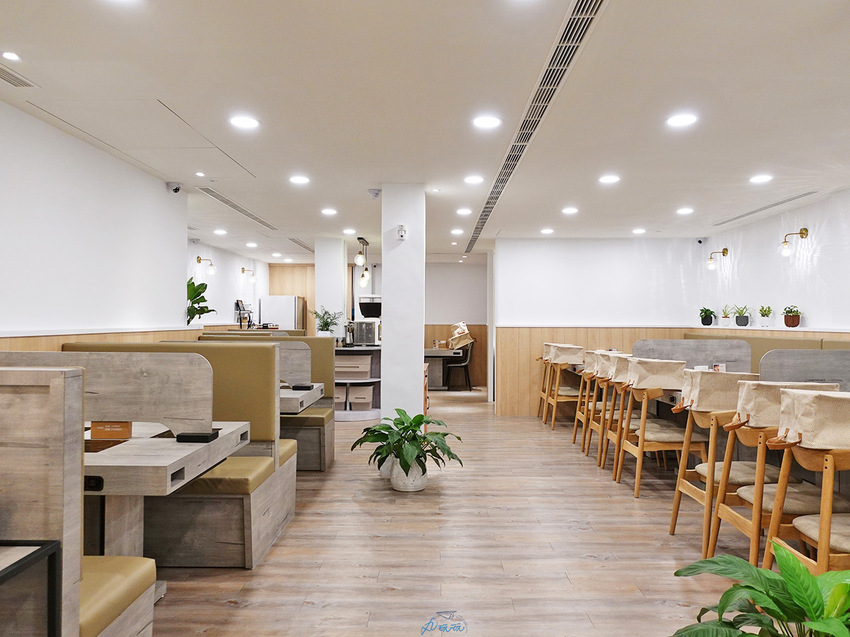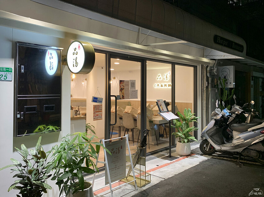 品湯提供個人鍋的模式偏向涮涮鍋店的座位形式,餐廳留下中央通道,將兩側設為用餐區,座椅提供沙發座和木沙發椅,約可容納50人左右。以木質調相近色與純白為主色系、翠綠植栽點綴綠意、香檳金燈飾增加亮點,營造出溫馨如家卻又不失優雅氛圍的質感空間。
