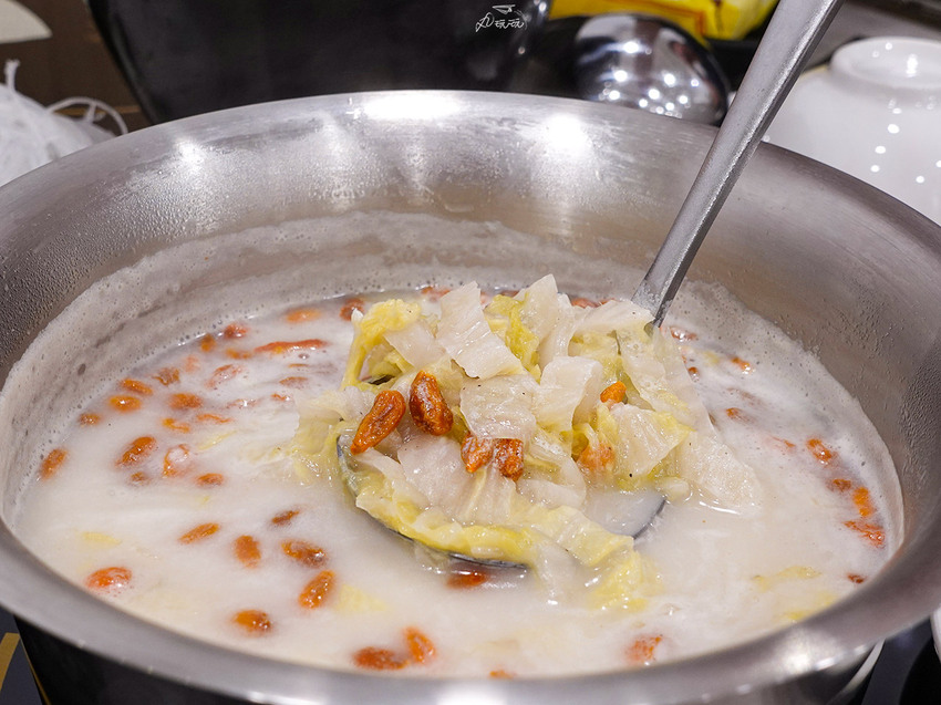 另外一份湯底湯底選了高粱酸白菜鍋,微辣。一般來說,酸白菜可以自成一路,然而品湯則是以老火胡椒煲湯為基底添加酸白菜,酸白菜的份量不少,讓酸白菜相當有存在感。