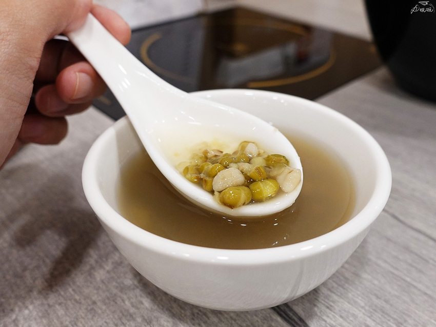 兩碗綠豆湯當餐後點心,適中的甜度當作飯後點甜點,相當解膩。