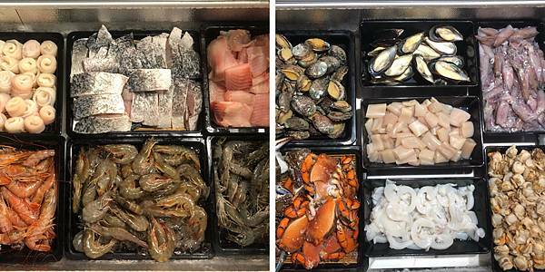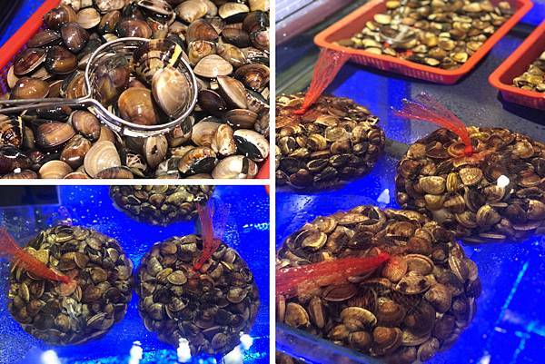 下圖有多樣的火鍋料及海鮮選擇,滿滿一缸的蛤蜊