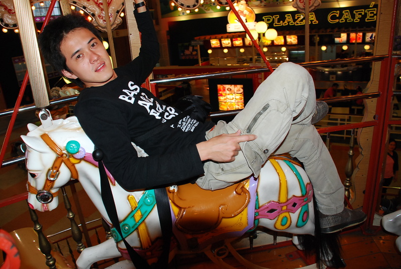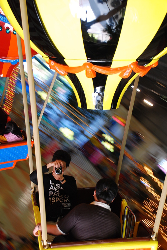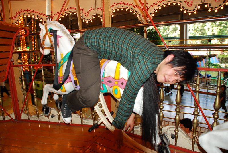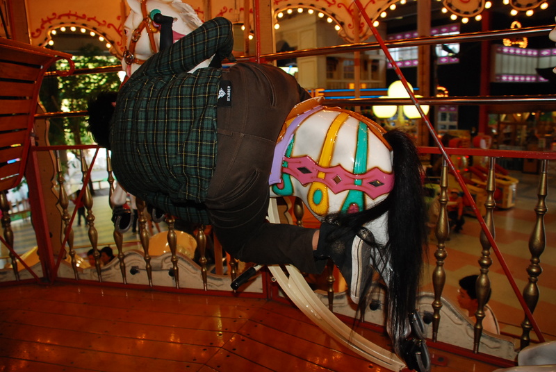 之後玩些兒童設施,回憶著童年的記憶,但是在旋轉木馬上面亂玩,