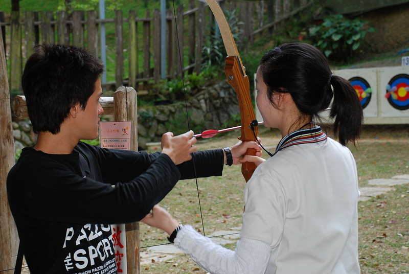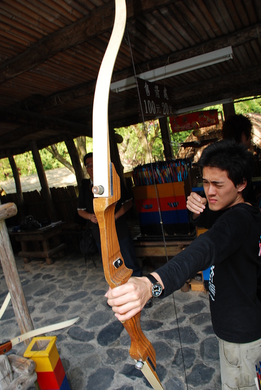 於是拿起弓,大姐姐親自授課,除了亂射外慢慢的有在進步,