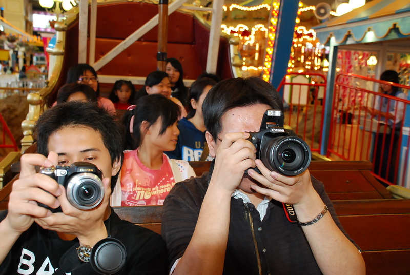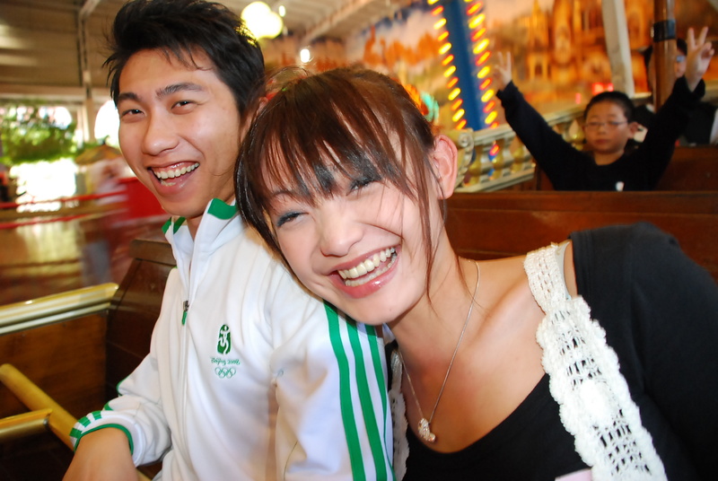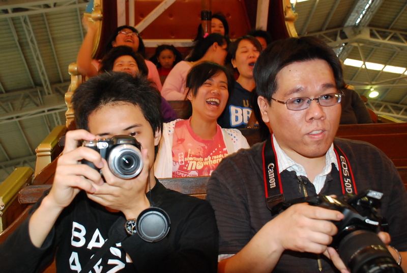 整場逛完,又回到遊樂設施區,玩點不同的坐海盜船,運行間拿單眼互拍,