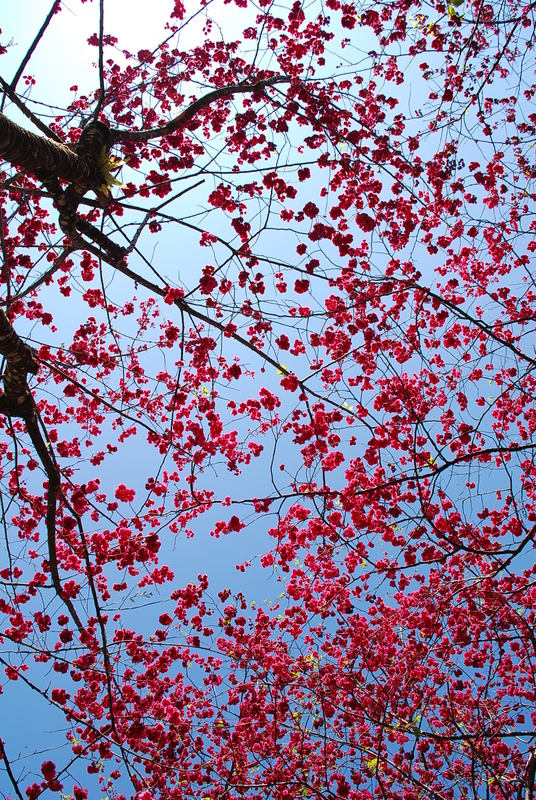 今年的櫻花超飽和的,上年櫻花稀疏許多,看到結實的櫻花,