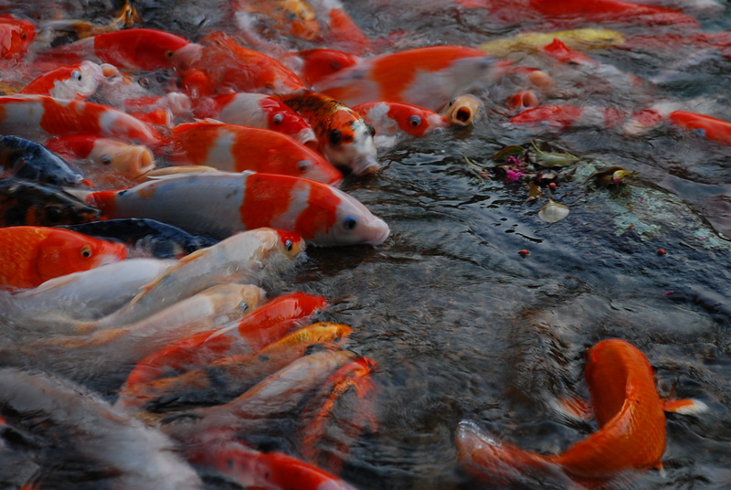之後往回到櫻花池,滿池的錦鯉,為了吃爬上岸,看著那付死魚臉感覺好噁心,