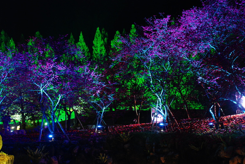 晚一點後拍攝著夜櫻,燈光隨著音樂變化著,每首歌的所代表的色系皆有所不同,
