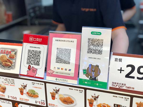 Burger talks提供很多種的多元支付,沒有帶現金也能透過行動支付或者外送平台吃到美味的漢堡