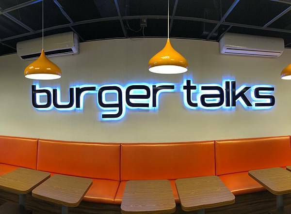 Burger talks 內用勘寬間蠻寬敞,店內有很醒目的LOGO