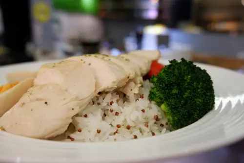 煎蛋軟嫩、雞胸肉舒肥過後吃起來不乾柴,