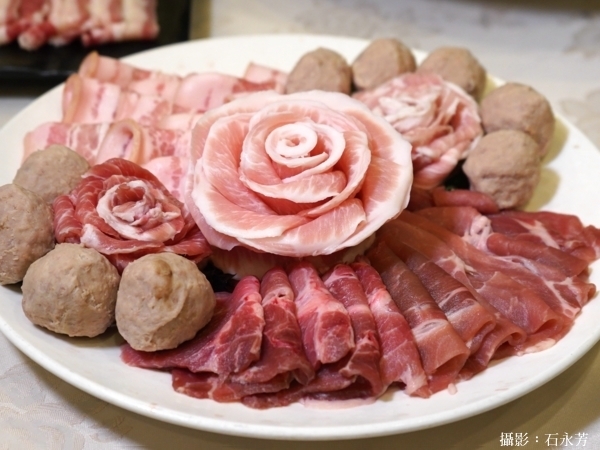 豬肉盤也毫不遜色,光是用肉雕塑而成的茶花,就讓人驚豔,這一場美食秀,完美滿足視覺與味覺的饗宴。