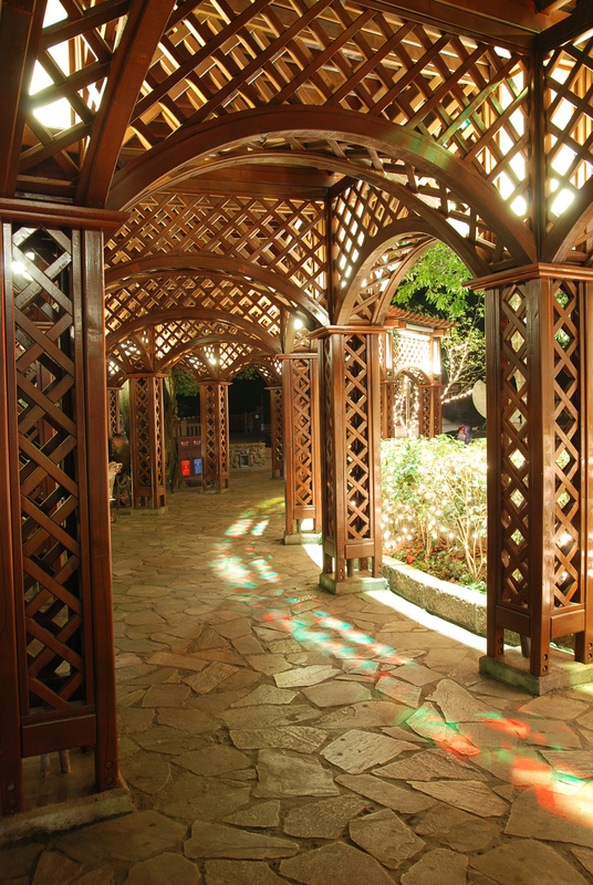 尋找最佳拍攝的點,街道旁的梅花已經綻放加上燈光的點綴,頗吸引人的,