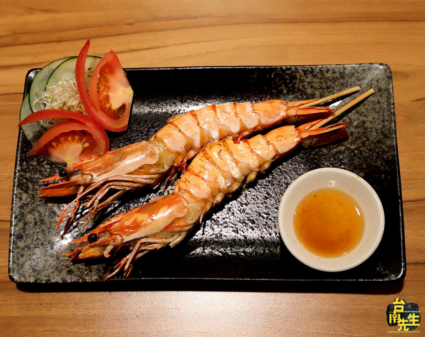 烤大蝦:使用當天採買的草蝦或明蝦,開背去腸泥後直接燒烤,搭配薑醋醬一起入口,更加襯托出蝦肉的鮮美甘甜