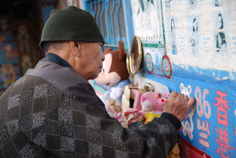 伯伯於是提起筆,補強著褪色的個體畫,問到伯伯每個人物的涵義,他只會回答你,