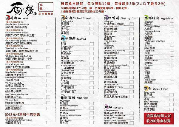 石‧撈麻辣鴛鴦火鍋菜單選擇吃到飽
