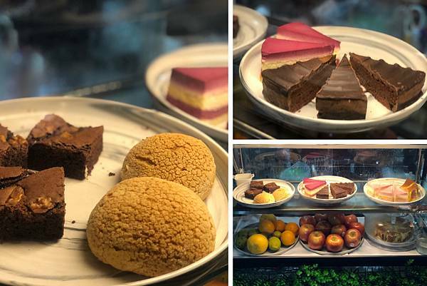 多樣化的冰櫃甜點,布朗尼、泡芙、切片蛋糕