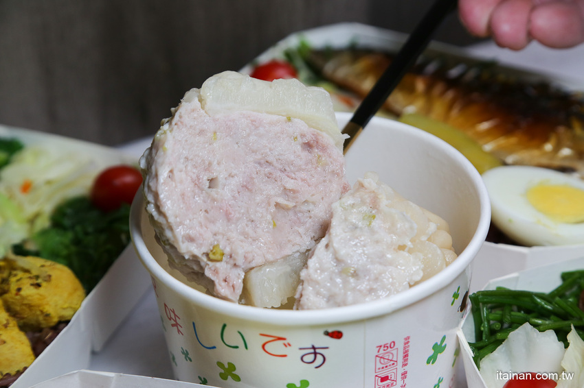 老闆說為了要做出這個巨無霸苦瓜封,選用的苦瓜就是要尺寸特別大的,吃來才會有脆脆的口感。而苦瓜封上鑲的肉餡,咬下超多汁,紮實度也很好,苦瓜帶點微微的苦韻跟脆軟口感入口還會回甘,湯頭融入了苦瓜封鑲肉的肉汁,氣味也很好,這家店裡榮登我心目中第一名的餐盒就是它!!