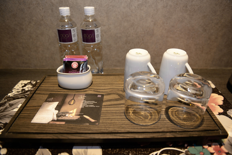 當你悠閒想喝杯茶,桌上提供多喝水礦泉水,以及進口紅茶與苺果茶包,