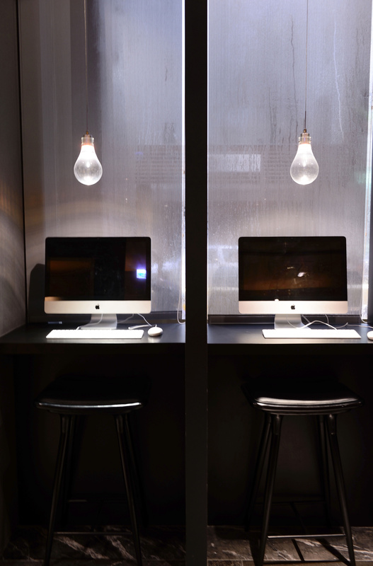 與燈光以折射出柔和的氣氛,提供許多座位、書籍與蘋果電腦..等,