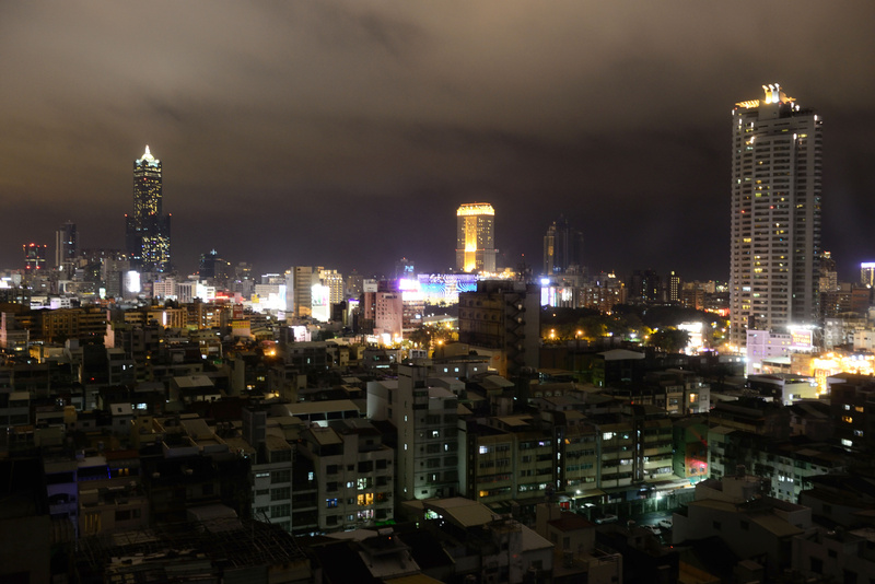 等到晚上打開窗簾,可以鳥瞰高雄的街景,以及遠方的85大樓,