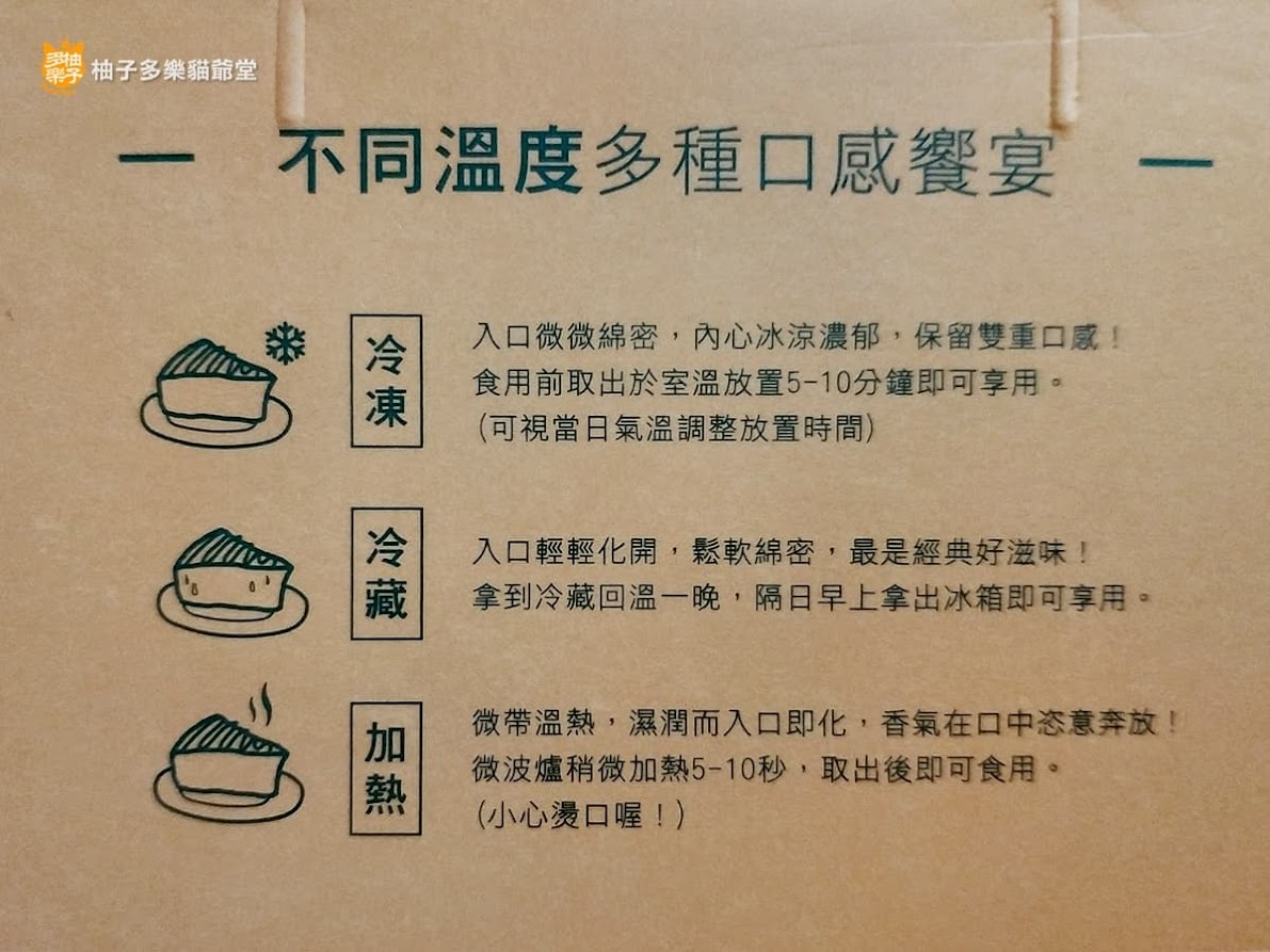 - 冷凍:蛋糕裡吃來還有類似冰淇淋口感的小顆粒霜晶夾雜其中。