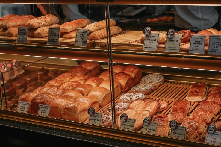 櫥窗櫃內擺放了許多麵包與蛋糕,草莓品項最為耀眼一直在誘惑著我啊!