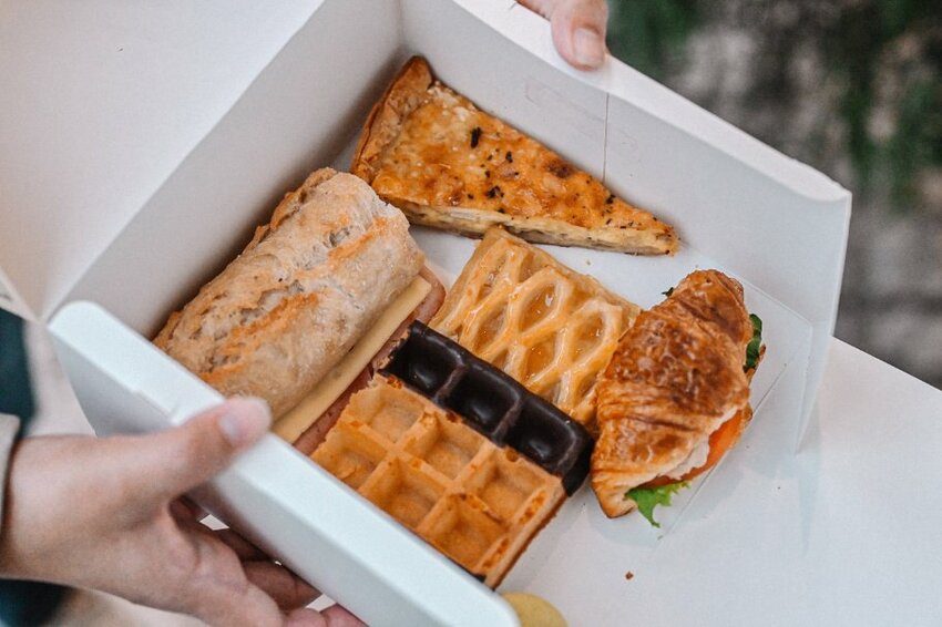 內有1/2布魯塞爾巧巴爾鬆餅、1/2鮪魚可頌、鹹派、1/2法國烤蘋果、1/2火腿三明治。