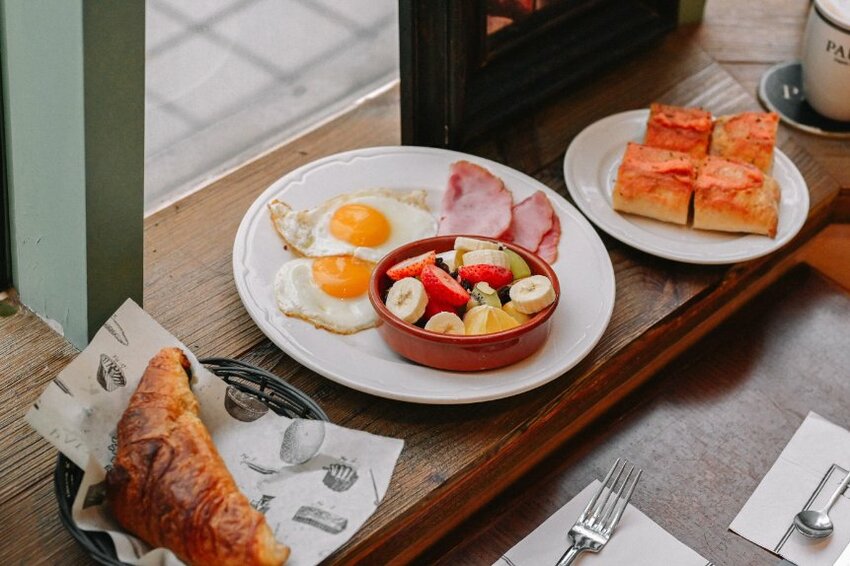 店內最受歡迎的早午餐之一,內含:雙蛋火腿、果醬或奶油或蜂蜜、新鮮水果盅或原味優格、兩款80元以下麵包,在下午兩點前還享有濃縮咖啡一杯,