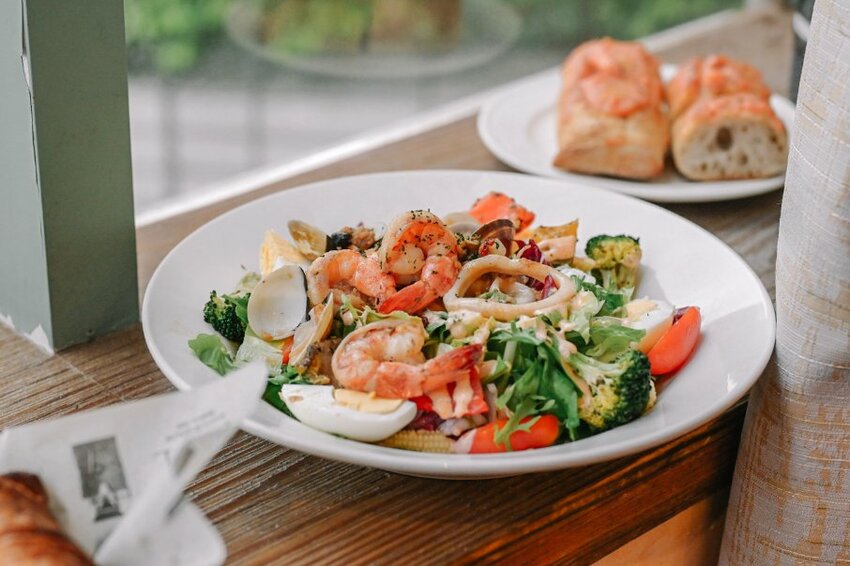 不得不說對沙拉挑剔的我也給了它極高的評價,生菜超級爽脆,花枝、鮮蝦都超級Q彈,真材實料吃完超級喜歡也好驚豔,多了蒜的香氣讓我食慾大開,飽足感也十足,立馬被圈粉。