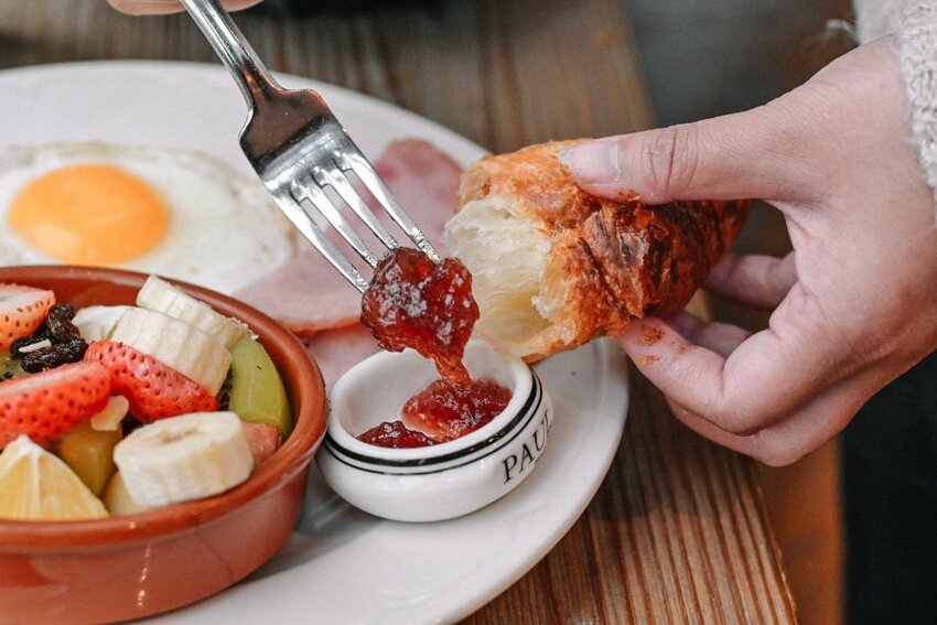 可頌除了吃原味之外,我也喜歡沾草莓果醬吃又是不一樣的風味。