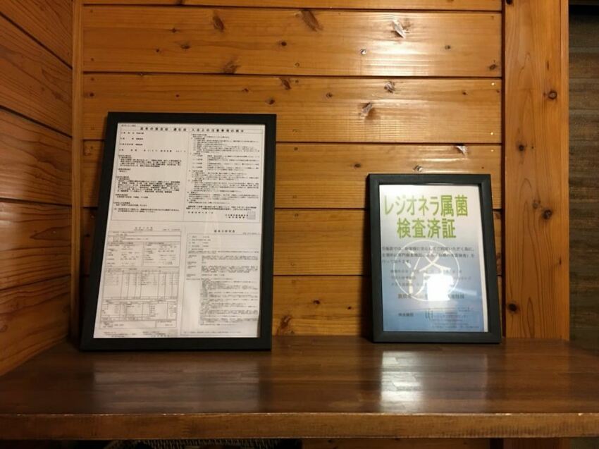 這次沒進去大眾池,我們使用的是家庭湯屋,只要沒人就可以使用,無需預約也不限次數,一進門可以看到溫泉許可證、合格書跟溫泉的種類說明。