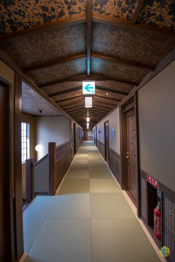 我們的房間在二樓,雖然草庵秋櫻只有兩層樓,還是附有電梯設備,二樓的走廊是狹長型的,房間皆在右手邊。