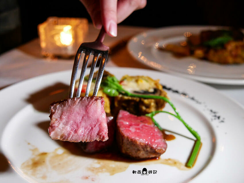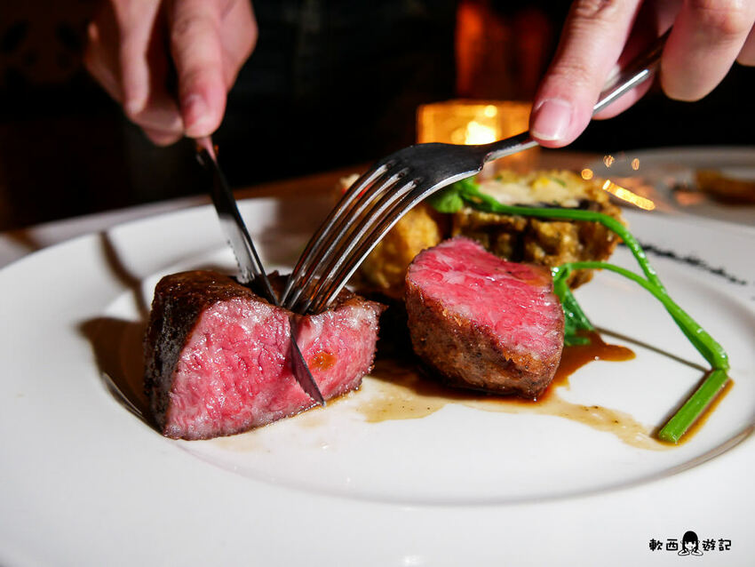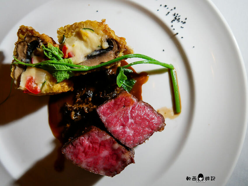 主餐選了五分熟的和牛,服務生會來灑上夏威夷黑鹽,和牛本身就好嫩喔喔喔喔喔喔喔喔,入口即化滑順細緻油脂豐厚,表面焦香脆,不需要沾鹽就相當鮮美了。