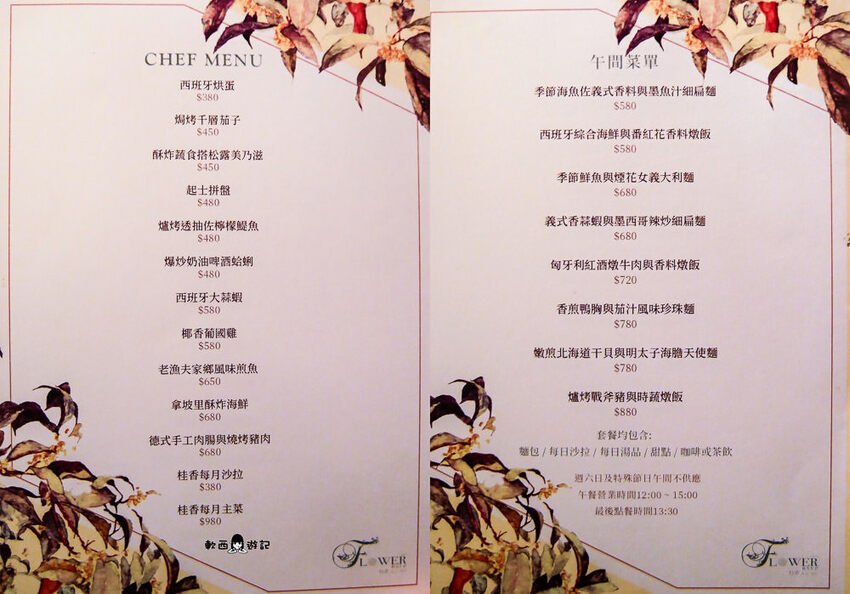 繞了一圈回到今天情人雅座,桂香菜單每個月更換一次,晚餐價位NT2000/人+10%服務費,預約時可告知不吃的菜色做調整,吃素的人也可做蛋奶素套餐。