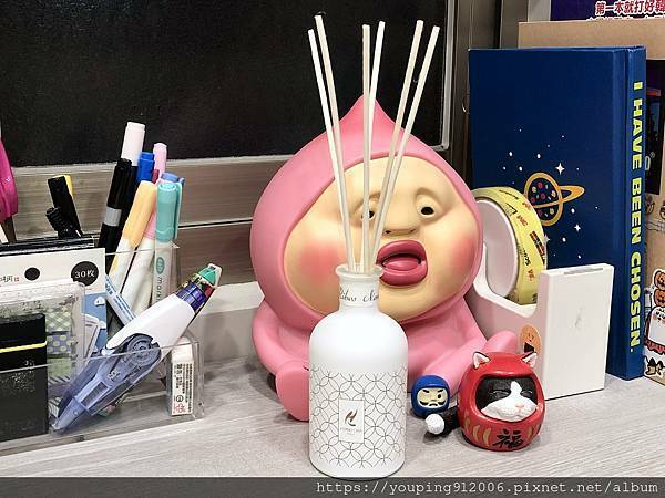 ▲我的工作書桌充滿童趣的擺設,書本文具等等顏色都比較雜亂,可是擴香放進去完全不突兀
