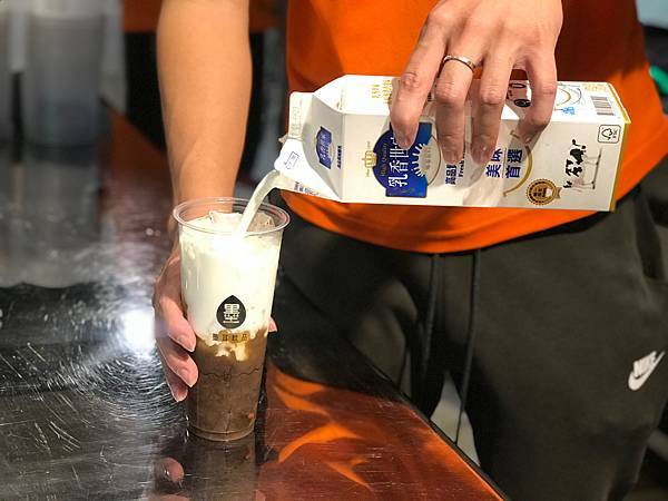 一大杯黑墨耳倒入滿滿的鮮奶或豆漿