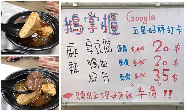 GOOGLE五星評論 麻辣鴨血、豆腐系列只要半價(20元起)