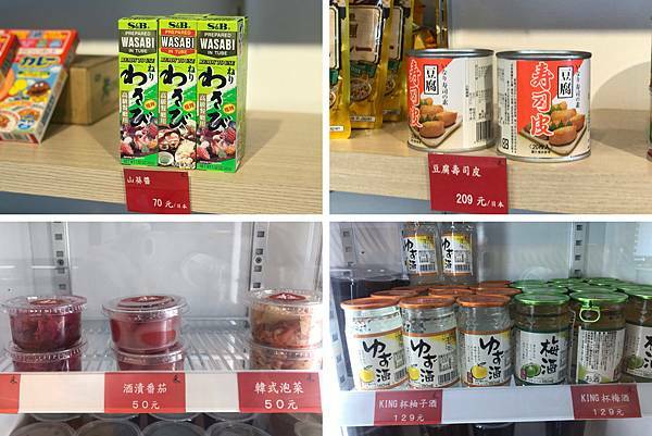 豆腐壽司皮罐頭、山葵醬、梅酒、醃漬物等等,也都可以買回家吃