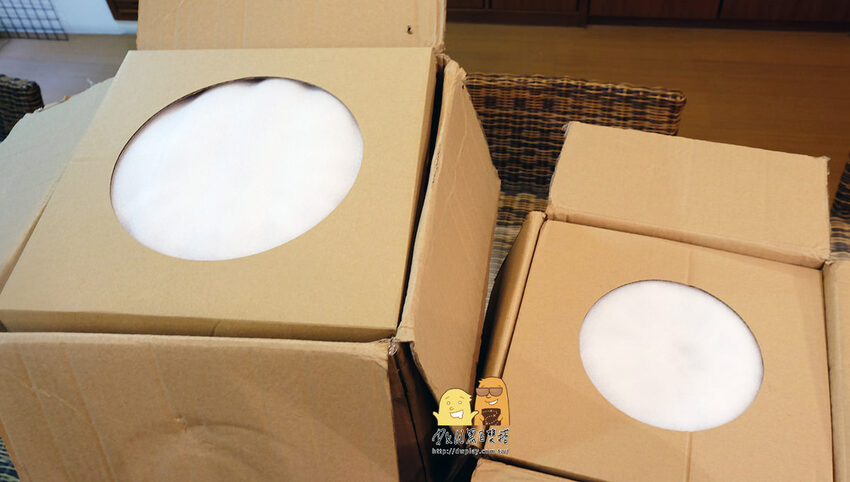 打開箱子後,發現THE JOOULY 多功能 LED 氣氛燈穩穩地被固定在紙箱內